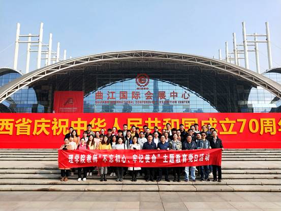 10月19日下午,理学院组织教职工党员和学生党员代表赴西安曲江国际会展中心参观了“陕西省庆祝中华人民共和国成立70周年成就展” 并开展“不忘初心、牢记使命”主题教育。成就展以“辉煌壮丽七十年 追赶超越再出发”为主题,共设家国情怀、追赶超越、不忘初心三大板块,着重讲述了三秦大地70年来的发展成就。