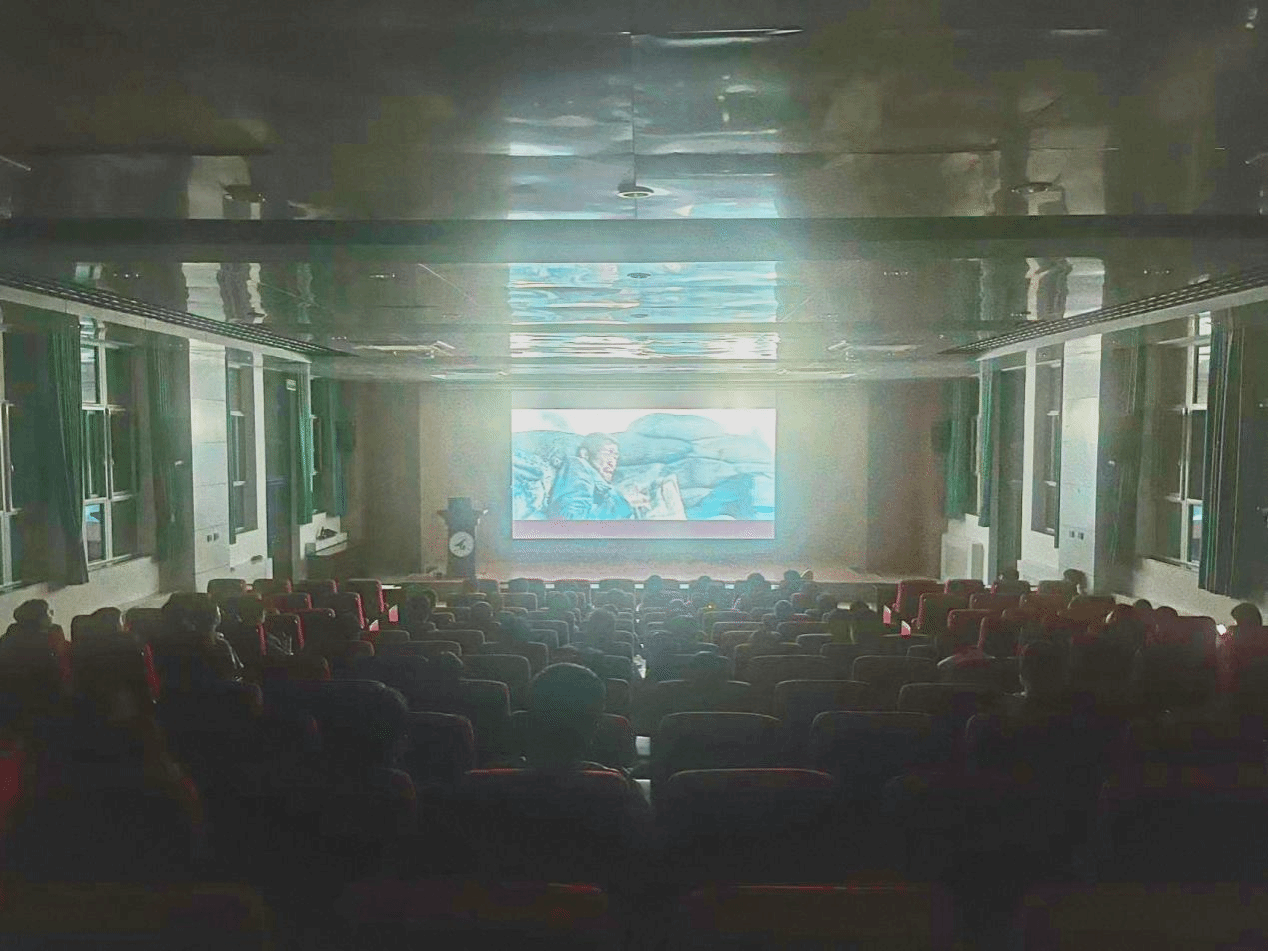 9月6日傍晚,学院“光影漫谈”红色放映厅启动红色主题影片展映,首轮放映抗战影片《八佰》。四行仓库的爆破声响起时,有学生下意识抓住座椅扶手;镜头扫过士兵写下“舍生取义”那一幕,全场静默,只剩心跳与炮火同频,仿佛那四个字不是写在残墙上,而是烙在每个人的胸口。当“八百壮士”齐声报数时,观众席里不约而同响起轻声跟读——“一、二、三……”数字重叠,仿佛把散落的个体重新编进民族的方阵。观影后,青年学子自发撰写影评、开展微研讨,读懂“一寸山河一寸血”的精神密码,更加坚定科技报国、教育强国的使命担当。大家没有像往常一样急着离开,而是围着屏幕拍了一张合影,背景定格在“八百壮士”敬礼的剪影。那一刻,快门声像新的号角。