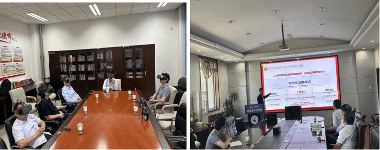 创新学习形式,体验“VR+”思政课堂。5月15日上午,学院领导班子成员、党委委员、院长助理赴马克思主义学院党建VR室开展沉浸式学习,通过VR设备,观看“中共一大”、“古田会议纪念馆”、“四渡赤水”实景教学资料,体验红色革命精神,进一步加深对革命精神的理解与认识。随后,马克思主义学院马克思主义基本原理系主任杨荣副教授在208会议室讲授《以中国式现代化全面推进中华民族伟大复兴》思政课,引导党员干部把思想和行动统一到党的二十大精神上来,将学习成效转化为实践力量,奋力推进学院教育教学工作高质量发展。