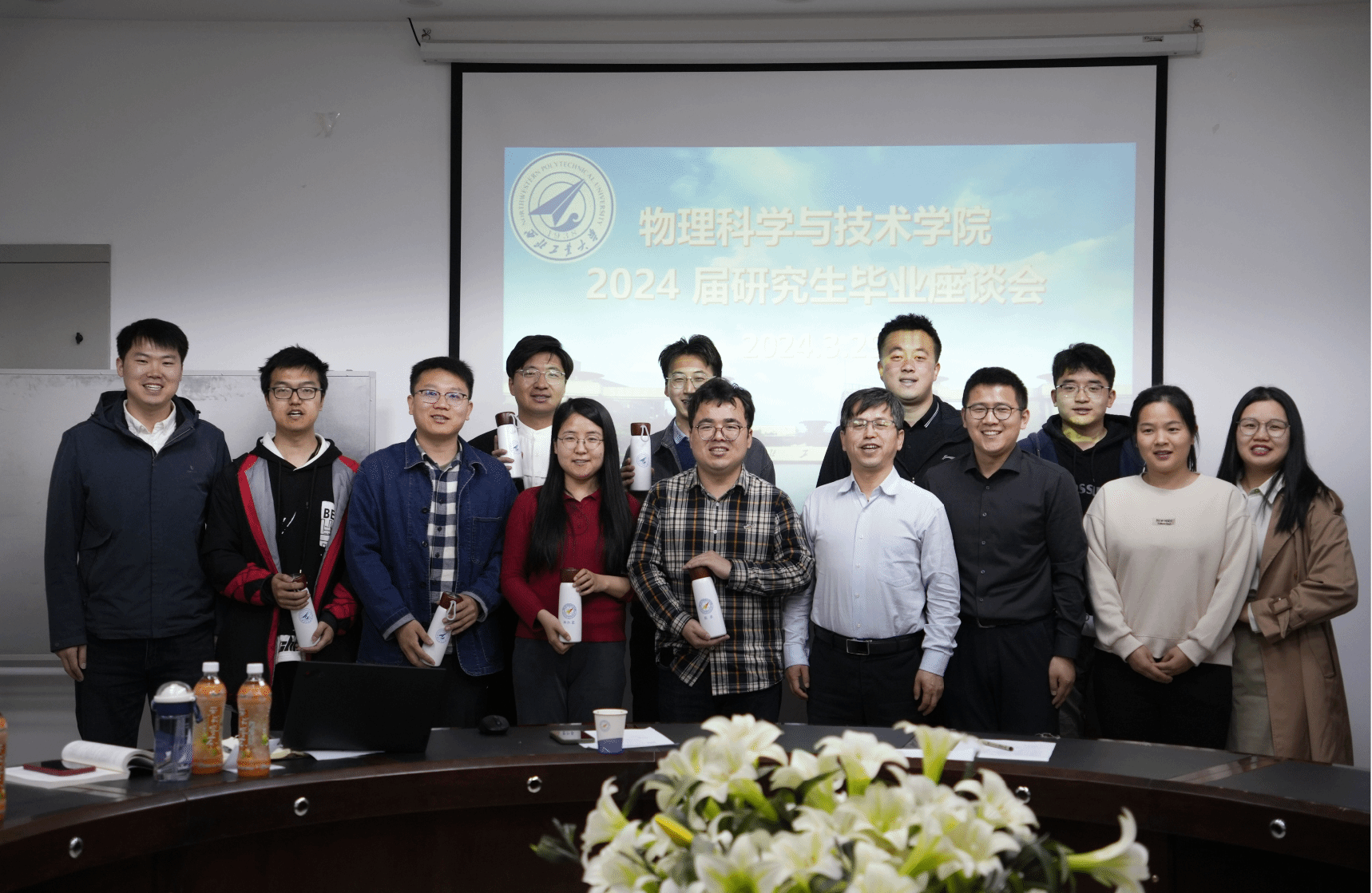 2024届研究生毕业座谈会在学院377会议室举行。学院党委书记晁小荣、副书记樊文迪、团委书记毛珊、研究生辅导员张煜浦、研究生教学秘书张灵静,以及2024届研究生毕业生代表齐聚一堂,座谈由樊文迪主持。