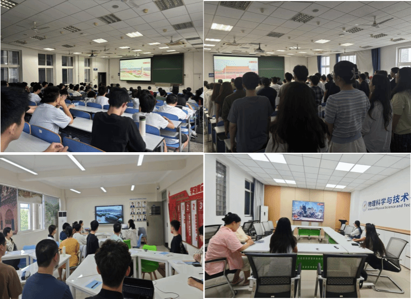 党委在长安校区理学院楼385会议室、教学东楼D1-303教室和“一站式”学生社区组织师生集中观看纪念中国人民抗日战争暨世界反法西斯战争胜利80周年阅兵仪式实况直播,共同见证这一庄严时刻。