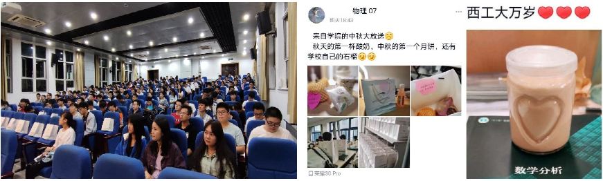 安全规章制度。29日下午,全体研究生安全教育大会在王洲航老师的主持下如期进行,毛东副院长为全院研究生作了题为实验室科研安全的专题讲座,院长助理肖鼎新老师布置了假期有关安全工作。29日晚,2018级和2019级本科生安全教育大会在理学院学术报告厅举行,王洲航老师主持会议,辅导员曾超老师和兼职辅导员王时宇同学参会。 会议最后,学院为同学们精心准备的中秋礼物使整个会议室都洋溢着喜迎双节的快乐气息。