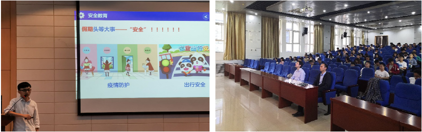 本次安全教育大会就假期的安全问题、防护要求、请销假规定等进行了重点强调;同时,学院专门设计制作了《请假申请书和行程记录单》,要求离校出西安市回家的同学在做好每日健康系统请假申报手续的同时,填报假期离校外出的详细信息,努力做到防患于未然。在此基础上,国产视频