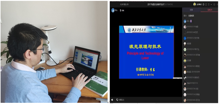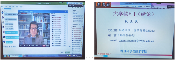 公共课《大学物理》的主讲教师权王民老师反馈到:第一次上课,按时进入视频课堂的学生175人,到课情况非常好。上课过程顺利,网络运行良好,图像声音效果良好。但因为看不到学生,教师上课没有现场感,也无法及时反馈学生端的情况而进行课堂管理,这需要一段时间的适应和调节。整体感觉课堂秩序还不错,随着线上教学的不断推进,我们将不断改进教学,找到适应线上教学的节奏和方法,以保证教学效果和质量。