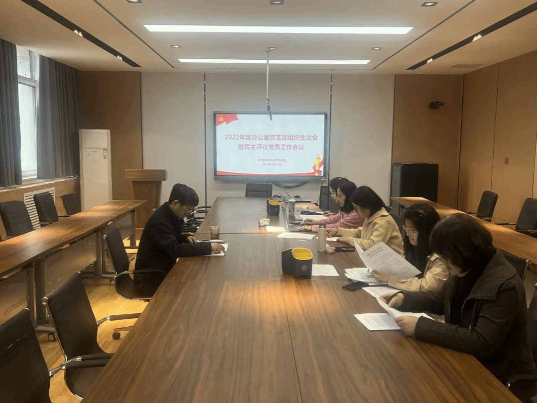 办公室党支部在理学院楼454会议室召开了2022年度组织生活会暨民主评议党员工作会议。学院党委书记晁小荣及全体办公室党员参加会议,会议由党支部书记杨文琪主持。