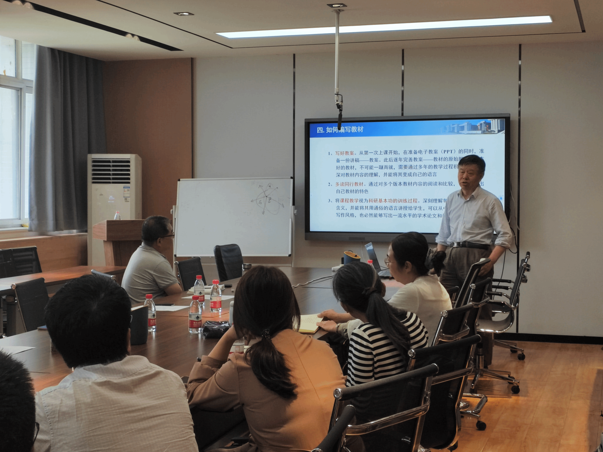在教材出版经验交流环节,赵建林老师从主讲过的课程、编写教材情况、专业建设、课程建设、教材建设的关系以及如何编写教材四方面分享了自己的经验,并强调编写教材除了要写好教案、多读同行教材外,还要注重将课程教学视为科研基本功的训练过程。