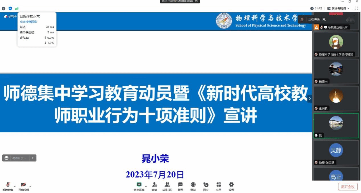 最后,晁小荣书记传达了教育部和学校关于师德集中学习的要求,结合习近平新时代中国特色社会主义思想、习近平总书记关于教育的重要论述和指示批示精神,讲授了专题党课,并对师德集中学习工作任务进行了部署。带领全体教职工学习了《新时代高校教师职业行为十项准则》、《研究生导师指导行为准则》、《国产视频