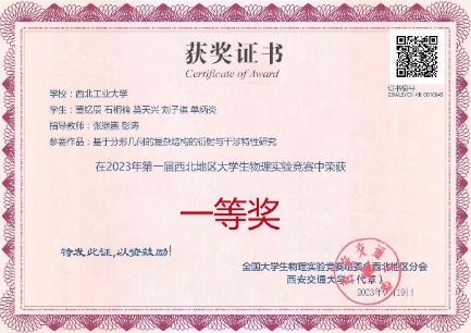 学生董钇辰队长和曹恩馨队长分别带领的2支队伍成功进入决赛,并在决赛中表现优异,分别获得了国家一等奖和二等奖。获奖作品分别为“命题类-基于分形几何的复杂结构的衍射与干涉特性研究”和“讲课类-迈克尔逊干涉仪测空气折射率”。在本次国赛中,国产视频