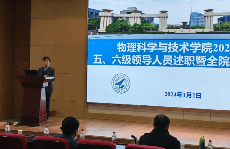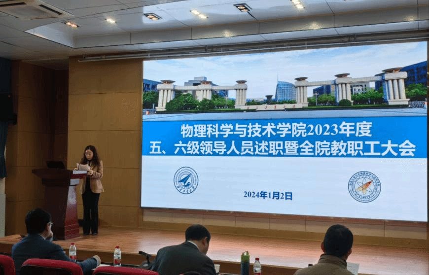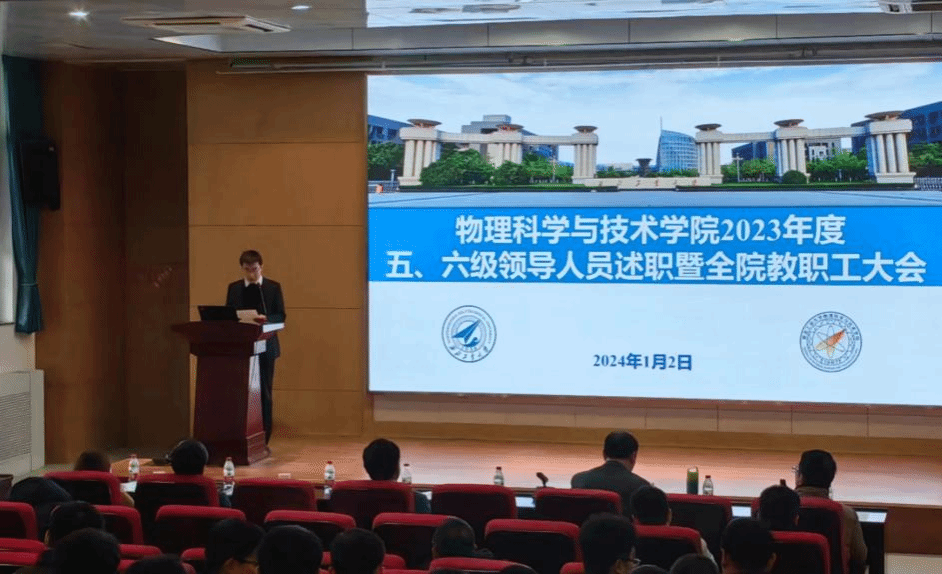 在学院楼报告厅召开2023年度五、六级领导人员述职暨全院教职工大会。魏炳波院士、学院党政领导班子及学院全体教职工参加了会议。会议由学院党委书记晁小荣主持。