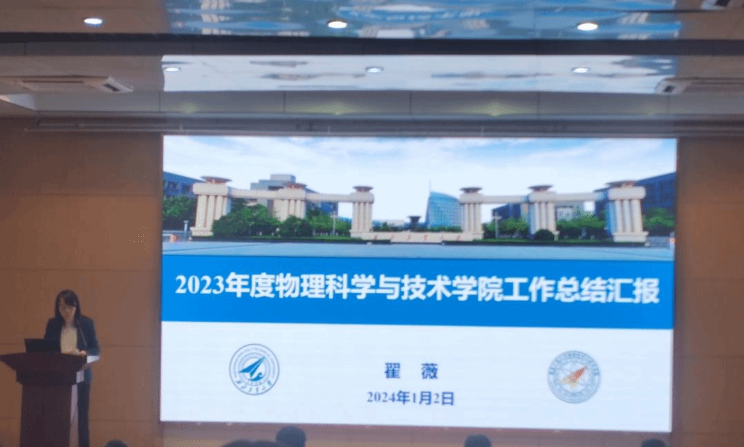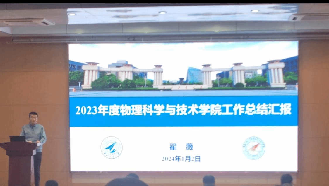 会上,翟薇院长首先做了学院2023年工作总结汇报。翟薇院长全面总结了学院2023年在学科建设、教育教学、科学研究、人才培养等方面取得的标志性成果,从党建工作、本科生培养、研究生培养、师资队伍建设、科学研究、国际合作等方面对总体工作与改革成效进行了介绍,并对学院2023年绩效分配方案进行了详细的阐述。汇报最后,翟薇院长就本年度学院存在问题及2024年重点工作安排做了细致的梳理。她指出,全院教职工要继续锚定学校“127”发展目标,加快建设一流物理学院。