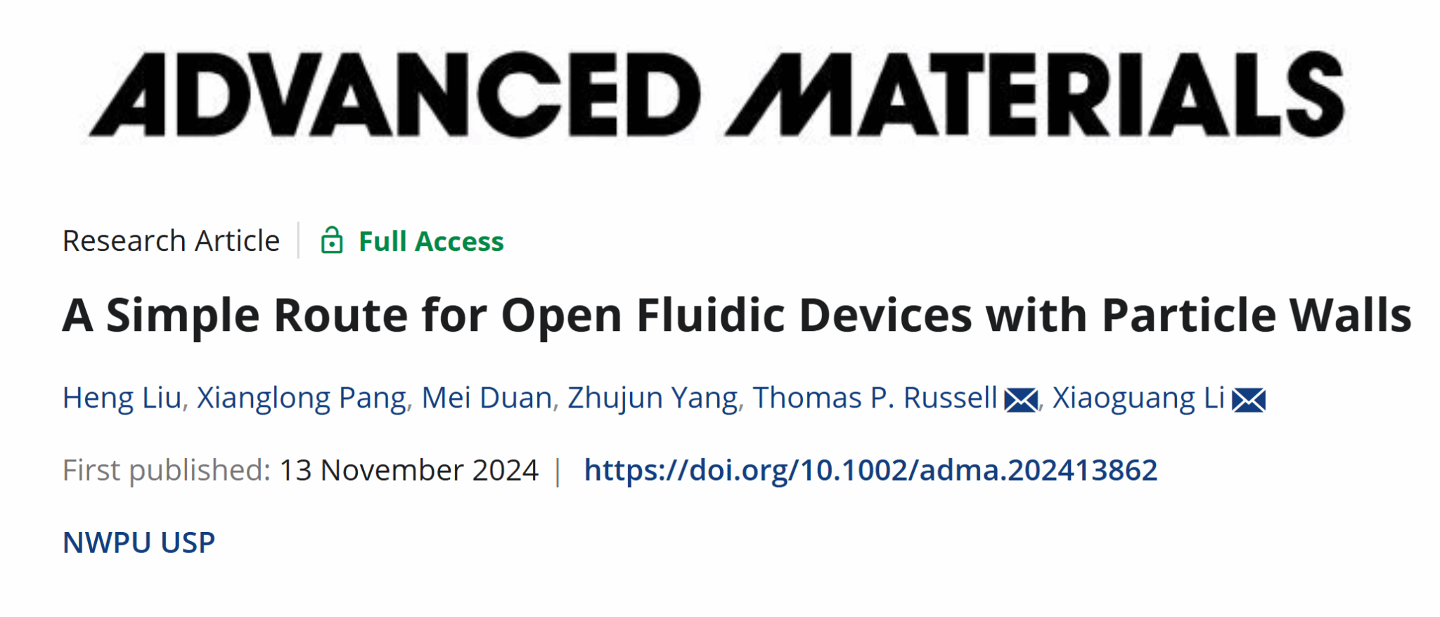 李晓光教授课题组在流体操控研究中取得重要进展,相关论文以“A simple route for open fluidic devices with particle walls”为题发表在材料领域顶级期刊《Advanced Materials》上。国产视频