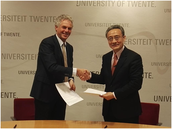 12月7日下午2:00,汪校长与特文特大学校长Thom Palstra教授共同签署了依托理学院的“纳米流体与界面国际联合实验室”,协议内容包括合作研究、联合培养、共同申请项目等各个方面。这一协议的签署为双方在纳米流体技术与界面科学研究提供了合作基础和研究平台。该国际联合实验室的中方负责人为理学院“青年千人”谢彦博教授,其毕业于特文特大学电子工程系,已在《Nature Communications》、《Nano Energy》等多种高水平国际期刊上发表研究论文。