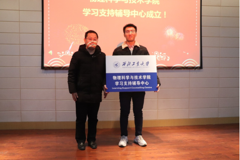 学习支持辅导中心成立仪式。曾超对学辅中心成立的意义和工作内容作了简要介绍:学辅中心主要负责学风建设,开展学习辅导、经验交流等工作,旨在创建优良学风,营造良好学习氛围,为学生提供专业的学习指导、咨询和支持服务,促进更好地学生成长成才。毛东向学辅中心首任主席武炫光同学授牌。接下来,物理学院学辅中心将秉承“求真务实,互帮互助”理念为全体学生做好相关服务工作。会议在齐唱校歌中结束。