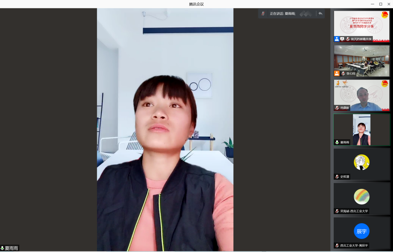 抗疫志愿者代表侯柏聿同学分别从志愿工作组织服务和个人参与志愿工作角度分享了抗疫的经历体会,并为清华大学同学播放了西工大原创战疫MV《逆风》。